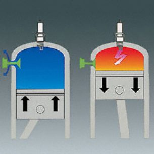 Vier Überströmkanäle verwirbeln das Kraftstoff-Luft-Gemisch vor der Zündung. So wird der Kraftstoff optimal verbrannt und der Wirkungsgrad des Motors deutlich erhöht. Das Ergebnis: weniger Verbrauch und ein hohes Drehmoment über einen weiten Drehzahlbereich.